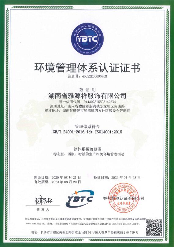 1、企業(yè)概況 湖南省雅源祥服飾有限公司地處湘贛邊境素有瓷城之稱的醴陵郊區(qū),企業(yè)創(chuàng)建于1995年,是行政執(zhí)法制服、被裝的生產(chǎn)企業(yè)。2、組織機構(gòu) 跟隨改革開放的步伐,我公司不斷發(fā)展壯大,公司董事會下設(shè)總經(jīng)理辦公室、生產(chǎn)部、技術(shù)部、質(zhì)檢部、財務(wù)部、采購部、業(yè)務(wù)部等部門,下設(shè)有流水線西服生產(chǎn)車間、標志服生產(chǎn)車間、襯衣生產(chǎn)車間、... [更多]